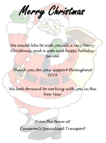 We will continue to run over the Christmas period, so feel free to call us anytime on 0414404660 to book in the transportation of your freight.